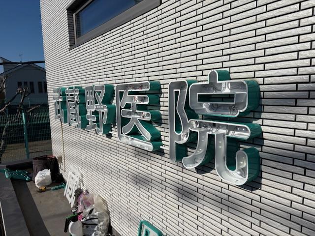 高所作業車40mと32mで壁面チャンネルの付け替え作業です。